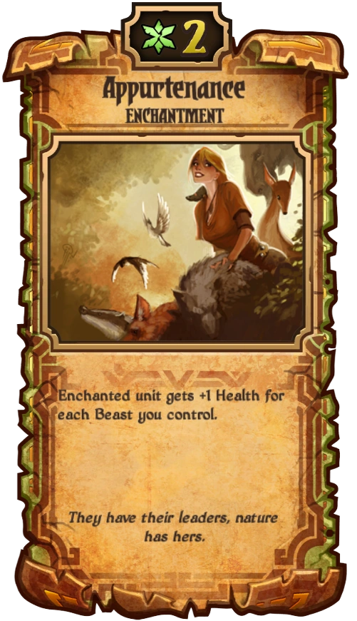 Appurtenance is Rare Enchantment scroll which can be played for 2 Growth resources.